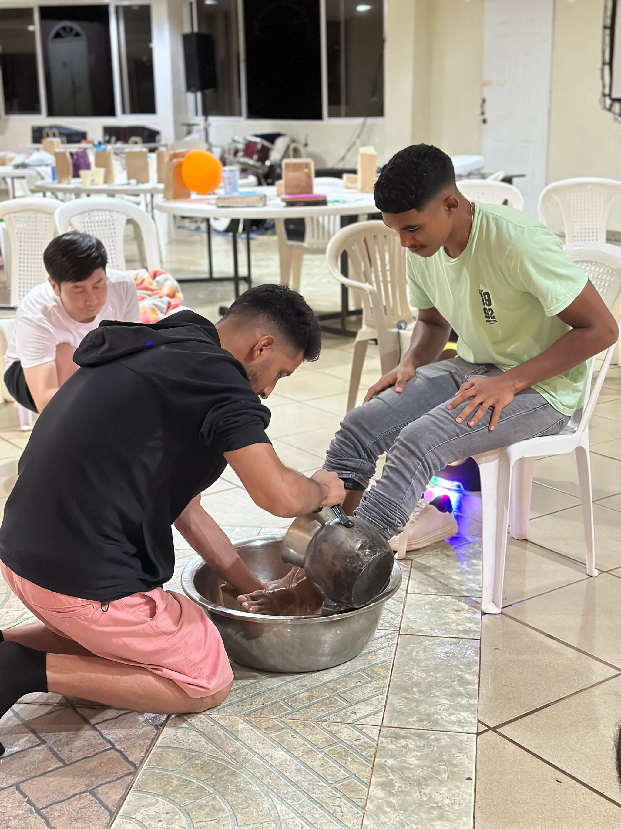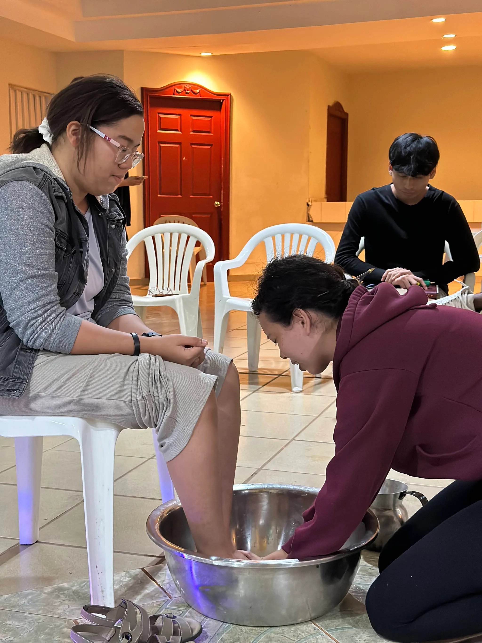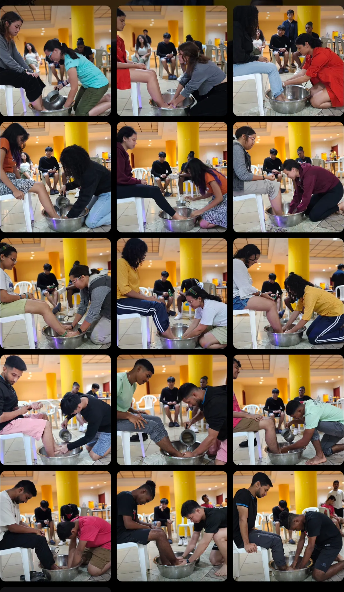 (서로를 위해 세족해주는 학생들. 형제자매의 발을 서로 씻어주는 모습은 언제나 감사와 감격이 듭니다)